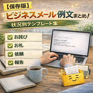 業務の中では、依頼・お詫び・日程調整・お礼など、似たような内容のメールを書くことも多いため、基本となる例文やテンプレートを知っておくと、メール作成の負担を減らすことができます。